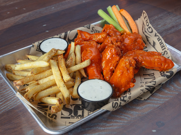 Buffalo Extra Hot (70 cal) • Mango Habanero (80 Cal) • Buffalo Hot (40 Cal) • Nashville Hot (90 Cal) • Buffalo Medium (70 cal) • Cajun Spice (10 cal) • Gold Fever (120 cal) • Stinging Hot Honey (60 Cal) • Sweet Chile (120 cal) • Buffalo Mild (70 cal) • Honey Chipotle (110 cal) • Mesquite BBQ (15 cal) • Lemon Pepper (0 cal) • Teriyaki (90 cal) • Garlic Parmesan (190 cal) • Naked (0 cal)