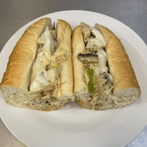 Grilled chicken, choice of cheese, mushrooms, onion, green bell pepper. Served on 12" hoagie roll