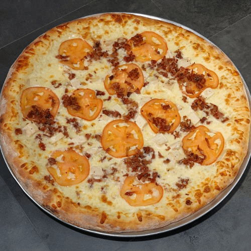 Ranch dressing, grilled chicken, fresh tomato, bacon, mozzarella