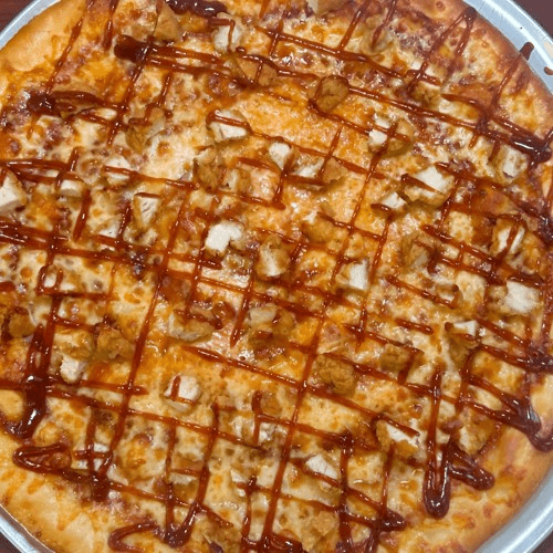 Barbeque sauce, battered chicken, mozzarella, and side ranch dressing
