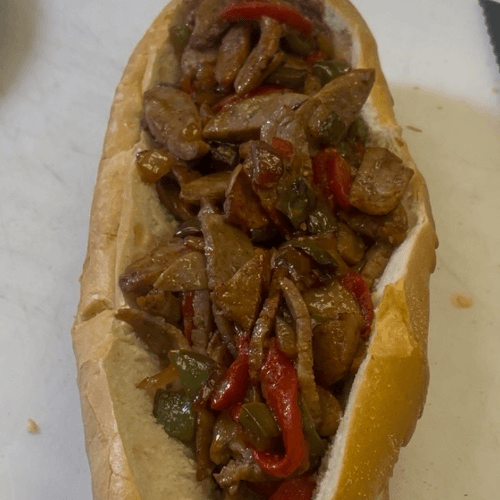 Grilled steak, American cheese, mushrooms, onions, green bell pepper. Served on 12" hoagie roll