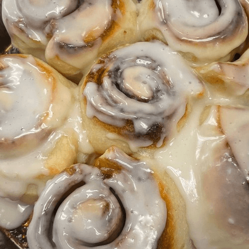 6 Pack. Homemade Cinnamon Rolls, Brown Sugar-Cinnamon, Warm Vanilla icing