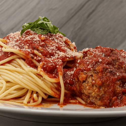 House-made meat lasagna, signature meat filling, ricotta, marinara, mozzarella. Served with a choice of spaghetti, penne, fettuccine, side salad & breadstick