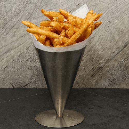 3 chicken fingers and a side of fries with a side of ranch, bleu cheese, honey mustard or BBQ sauce