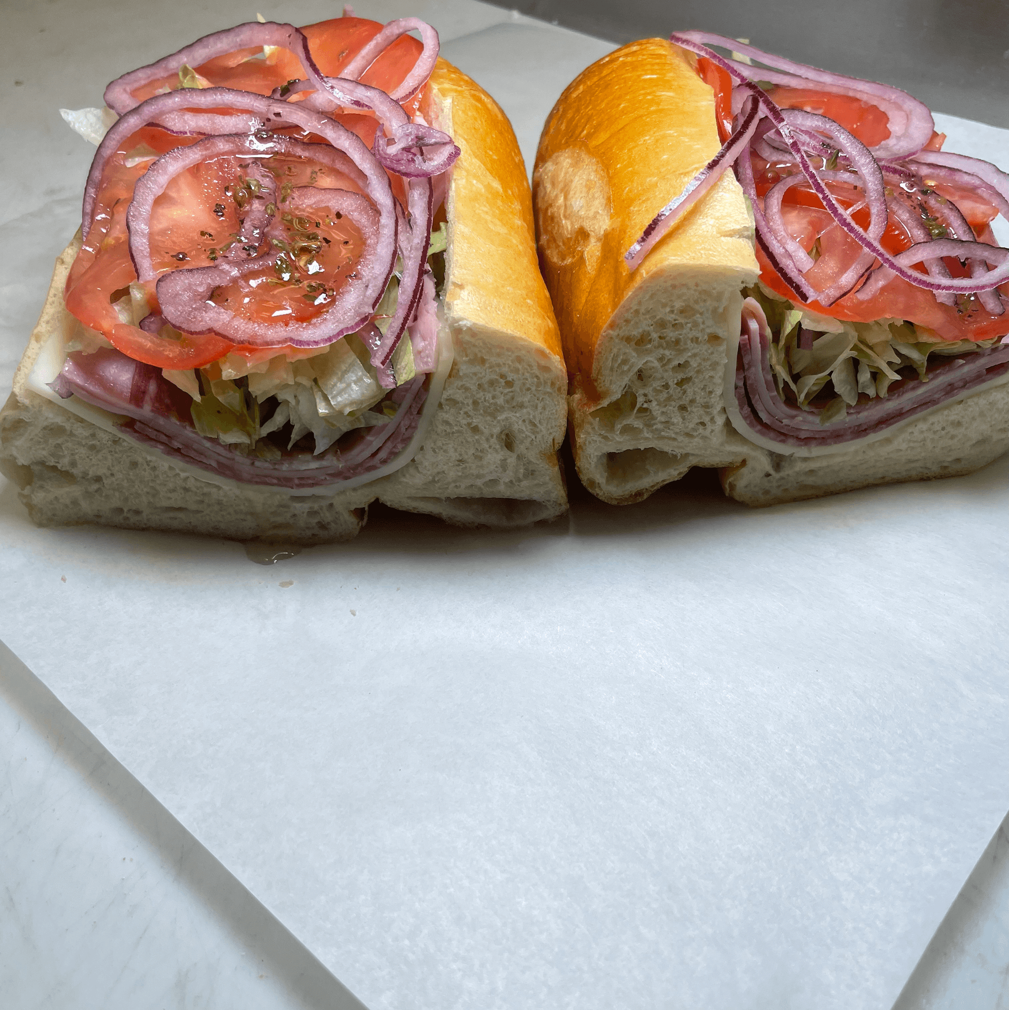 Salami, ham, sopressata, provolone cheese, lettuce, onion, tomato, house-made Italian dressing