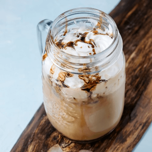 White chocolate, peppermint, whipped cream & caramel drizzle