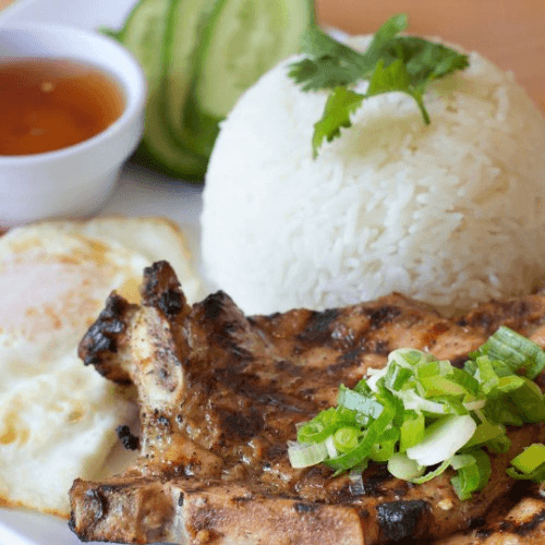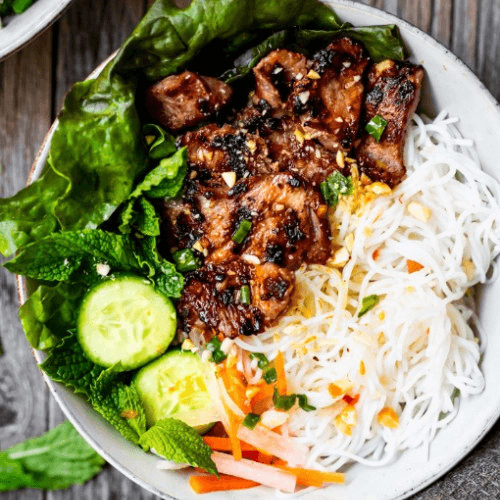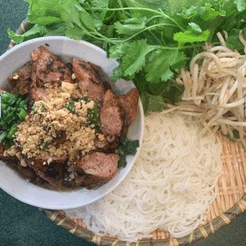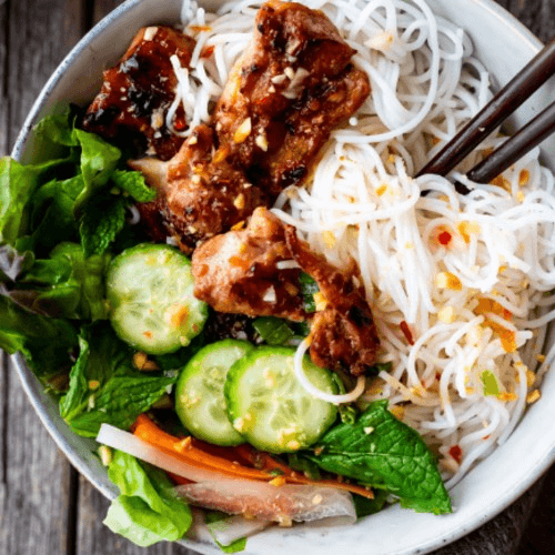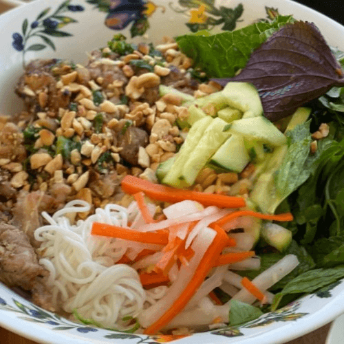 Vermicelli with grilled pork patty and charbroiled pork