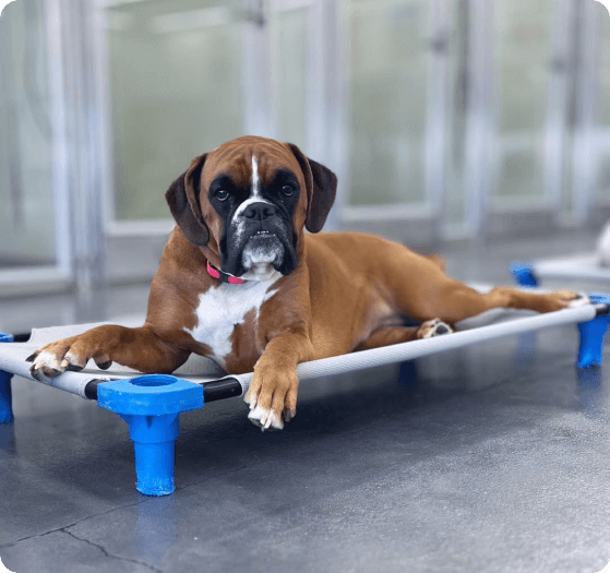 Club K9 Las Vegas offers overnight dog boarding at our pet hotel in Las Vegas, NV. Our luxury facility is designed to keep your pup safe, comfortable, and happy. With over 40 years of experience, the luxury dog hotel features cage-free, climate-controlled suites, supervised playgroups, and personalized care tailored to each dog’s routine. Whether for an overnight stay or daytime care, every pup enjoys structured play, enrichment, and rest in a clean, secure environment. Special needs and unaltered dogs are welcome, and optional Stay & Train programs are available to reinforce good behavior during their stay.
