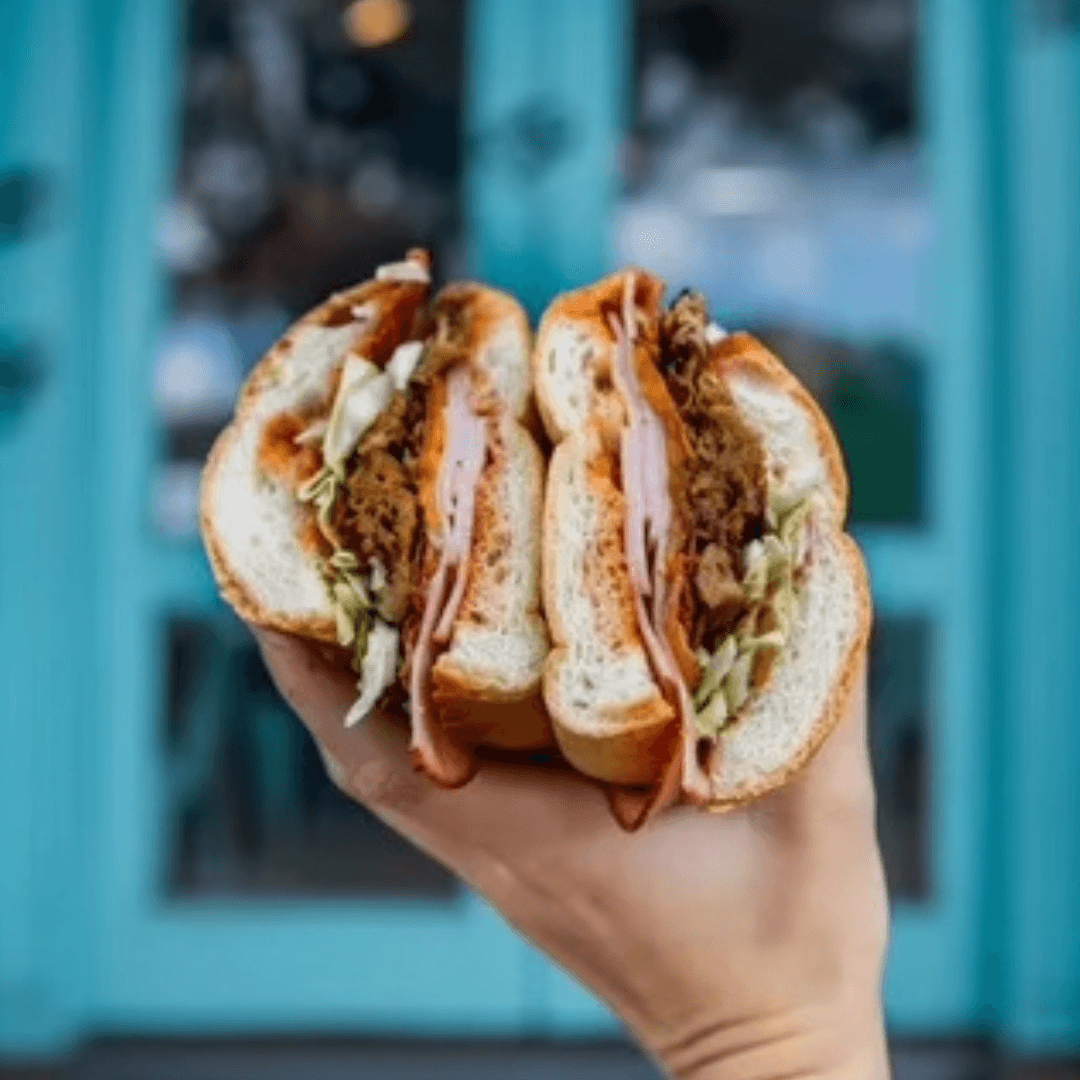 12-Hour slow-roasted kalua pulled pork, ham, bacon, guava BBQ sauce, cheese, and slaw