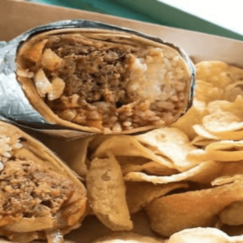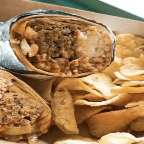 Choice: 12-hour slow-roasted kalua pulled pork or pulled chicken, guava BBQ sauce, white rice, cheese, and grilled onions in a flour tortilla