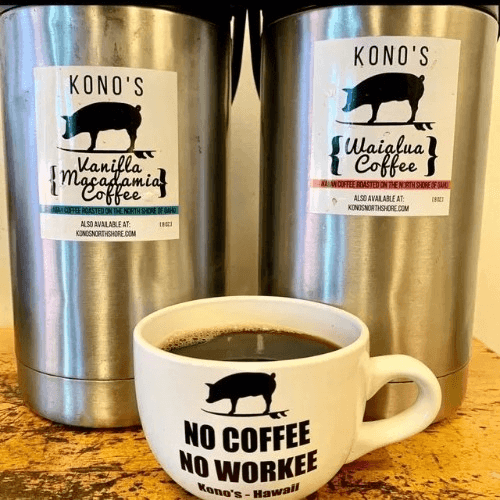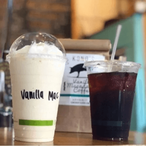 Hot coffees: vanilla macadamia nut or Waialua. Iced coffee: vanilla macadamia nut