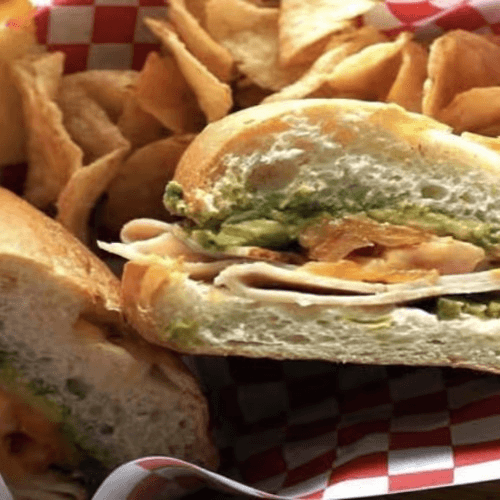 Avocado, cream cheese, tomato, turkey, mesclun salad, & red onion
