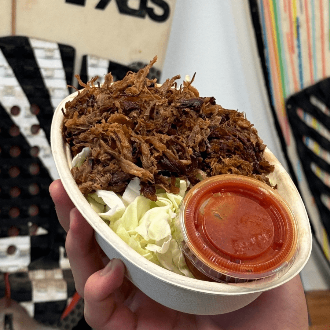 12-Hour slow-roasted pulled kalua pork & bacon.