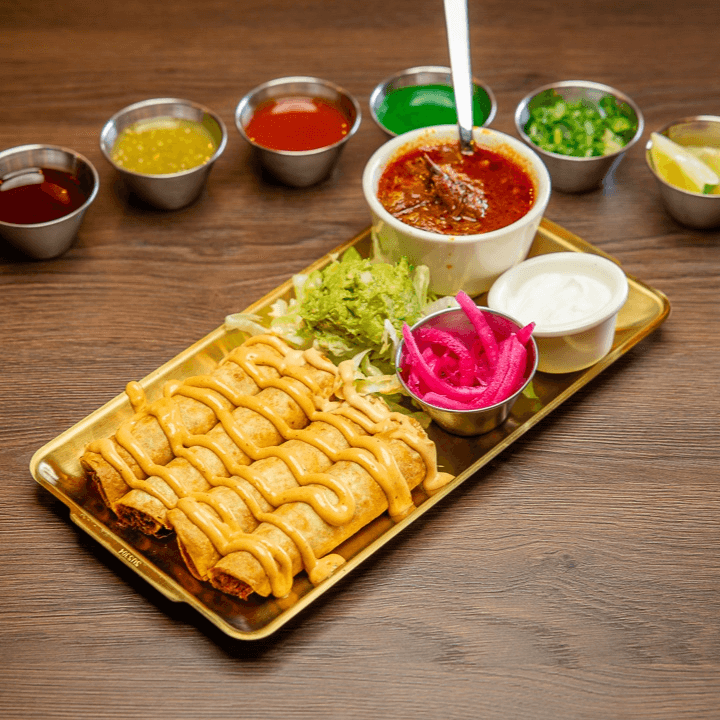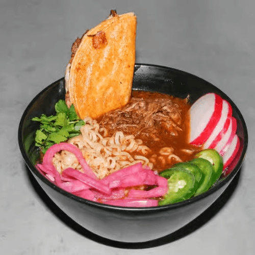 Your choice of meat. Consome included shredded Cheddar cheese, cotija cheese, sour cream, avocado, onion, cilantro