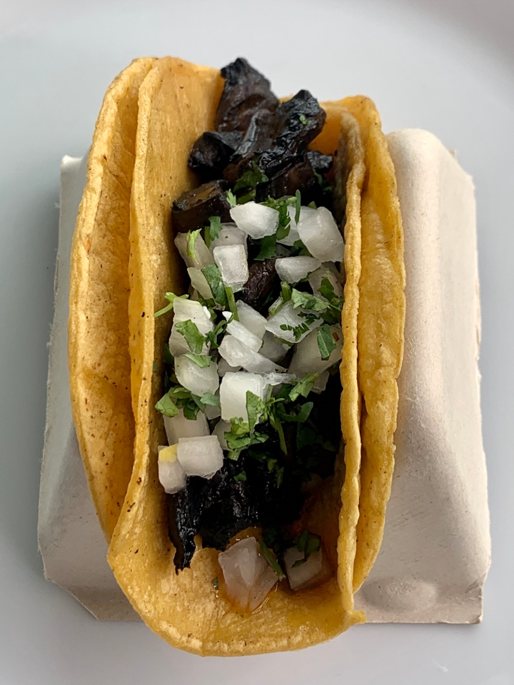 Corn tortilla, portobello, chili powder, onion & cilantro