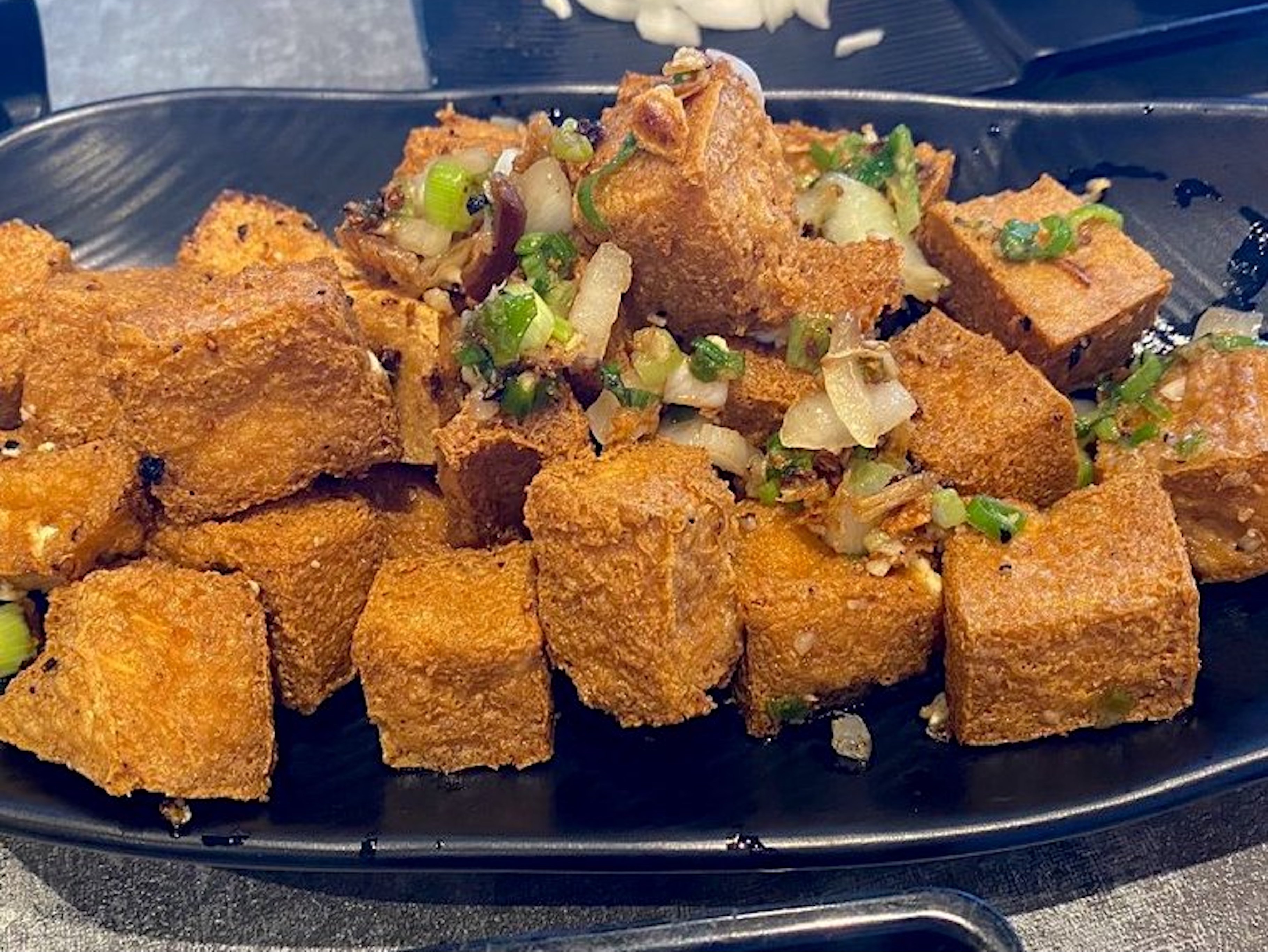 Deep fried tofu wok-tossed in sea salt, jalapenos, dry red chilis, onions, garlic and shallots.