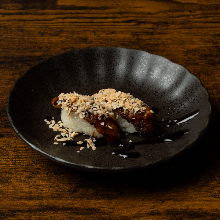 FRESHWATER EEL WITH AVOCADO, TOASTED COCONUT FLAKES & SWEET SOY