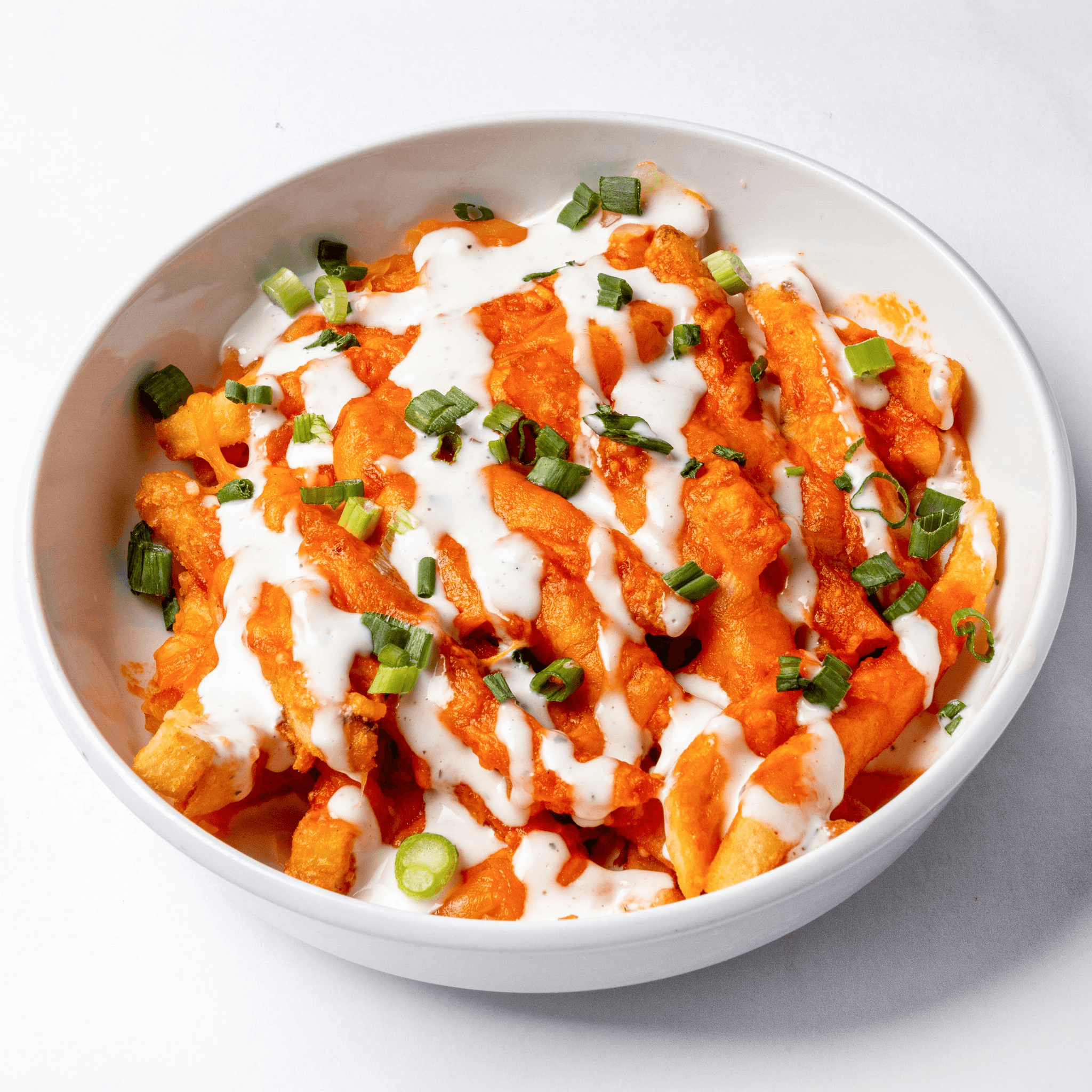 Cheddar cheese, buffalo hot sauce, creamy bleu cheese dressing