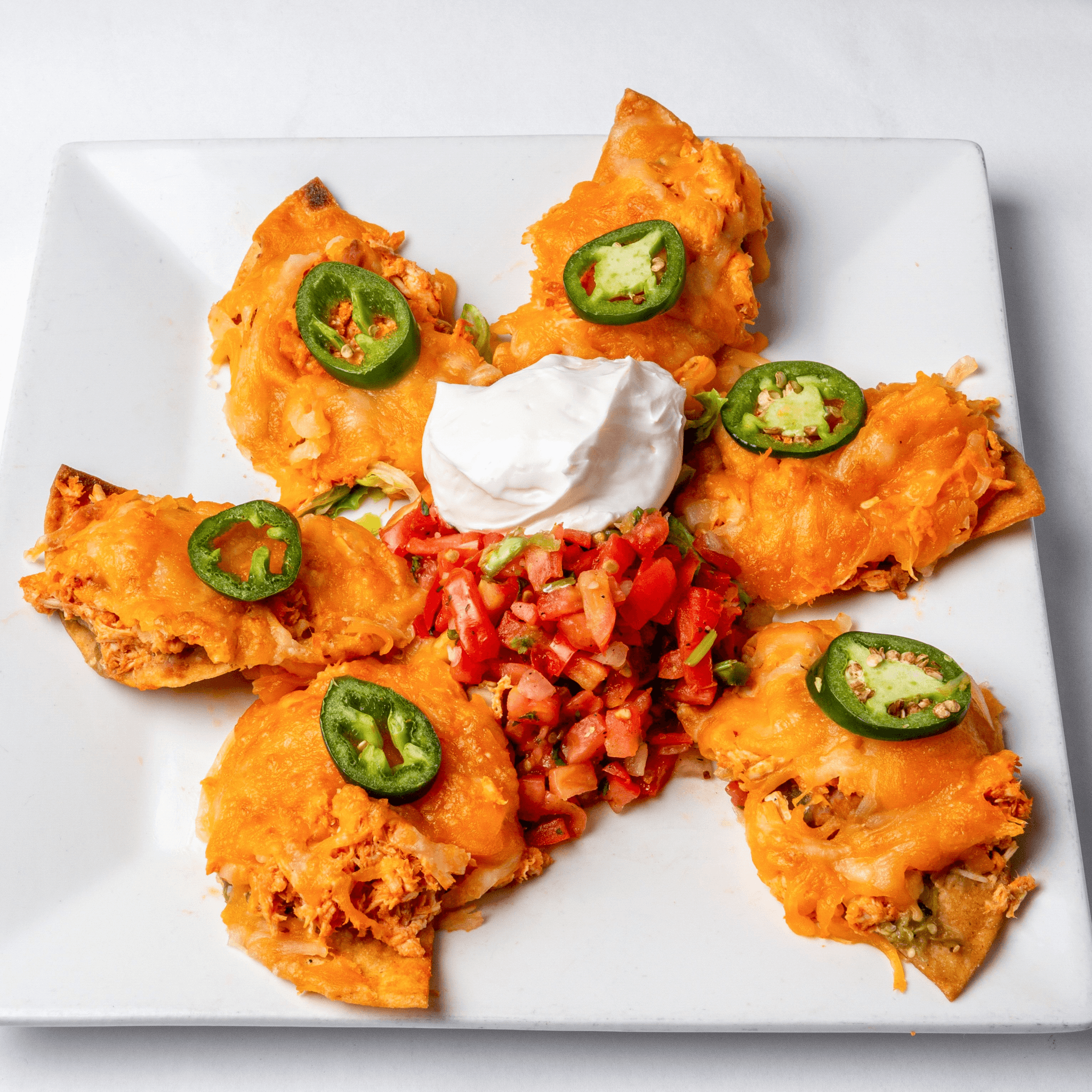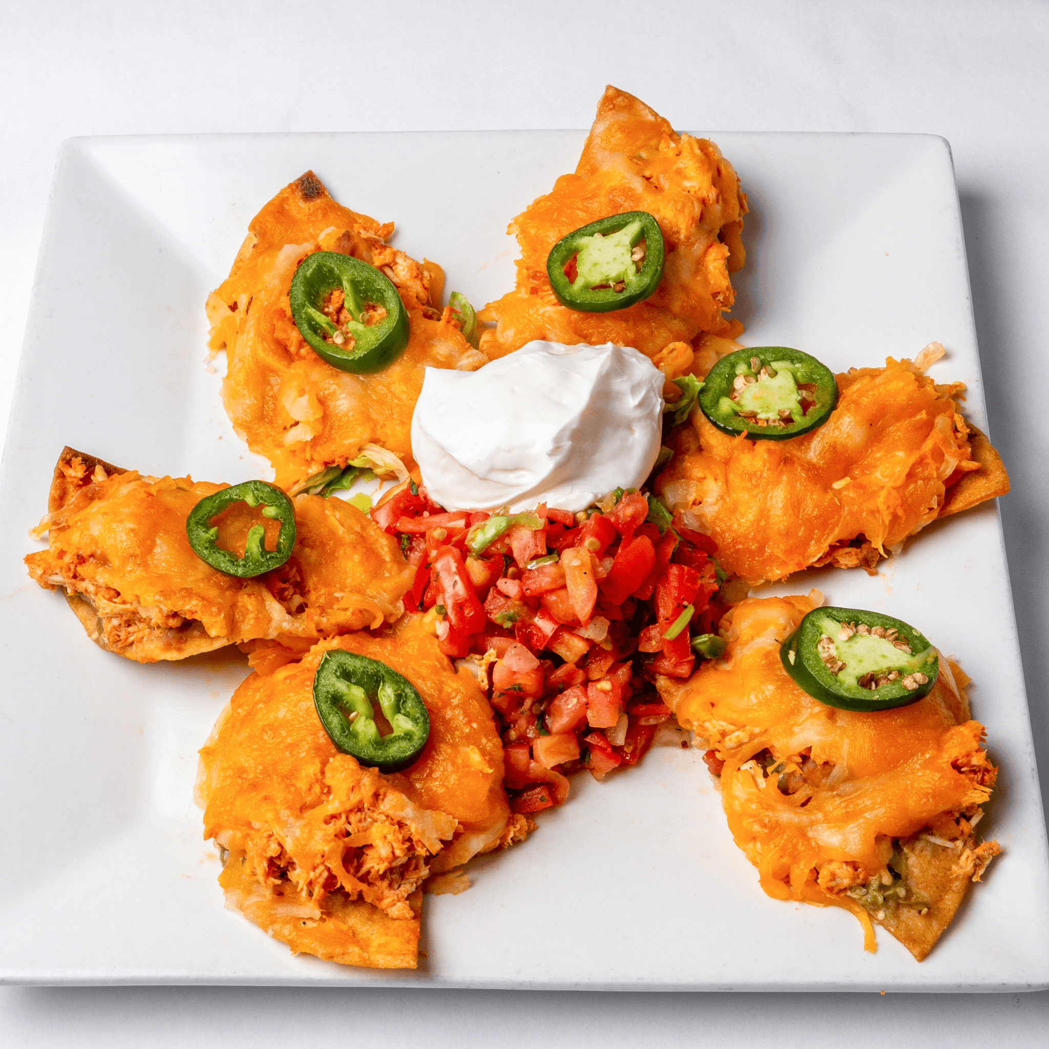 Flour tortilla, cheddar, sour cream, pico de gallo