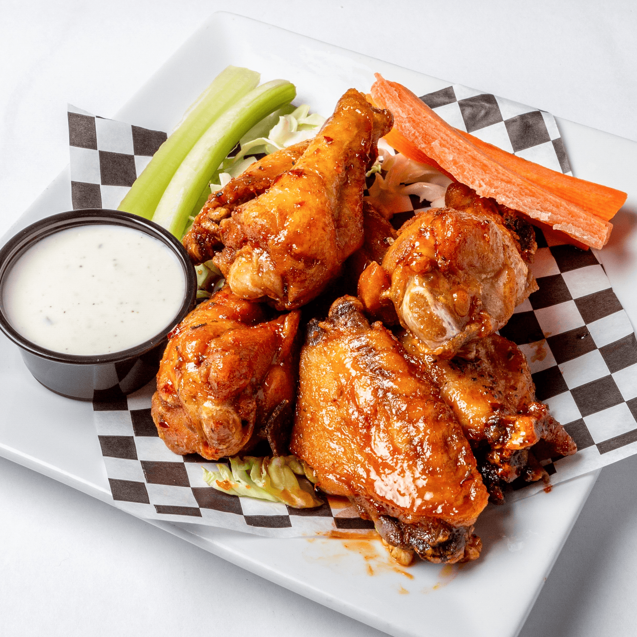 Buffalo, garlic parm, BBQ, ghost chili, sriracha glaze, miso, lemon pepper, teriyaki, signature bar glaze, lemon pepper, teriyaki