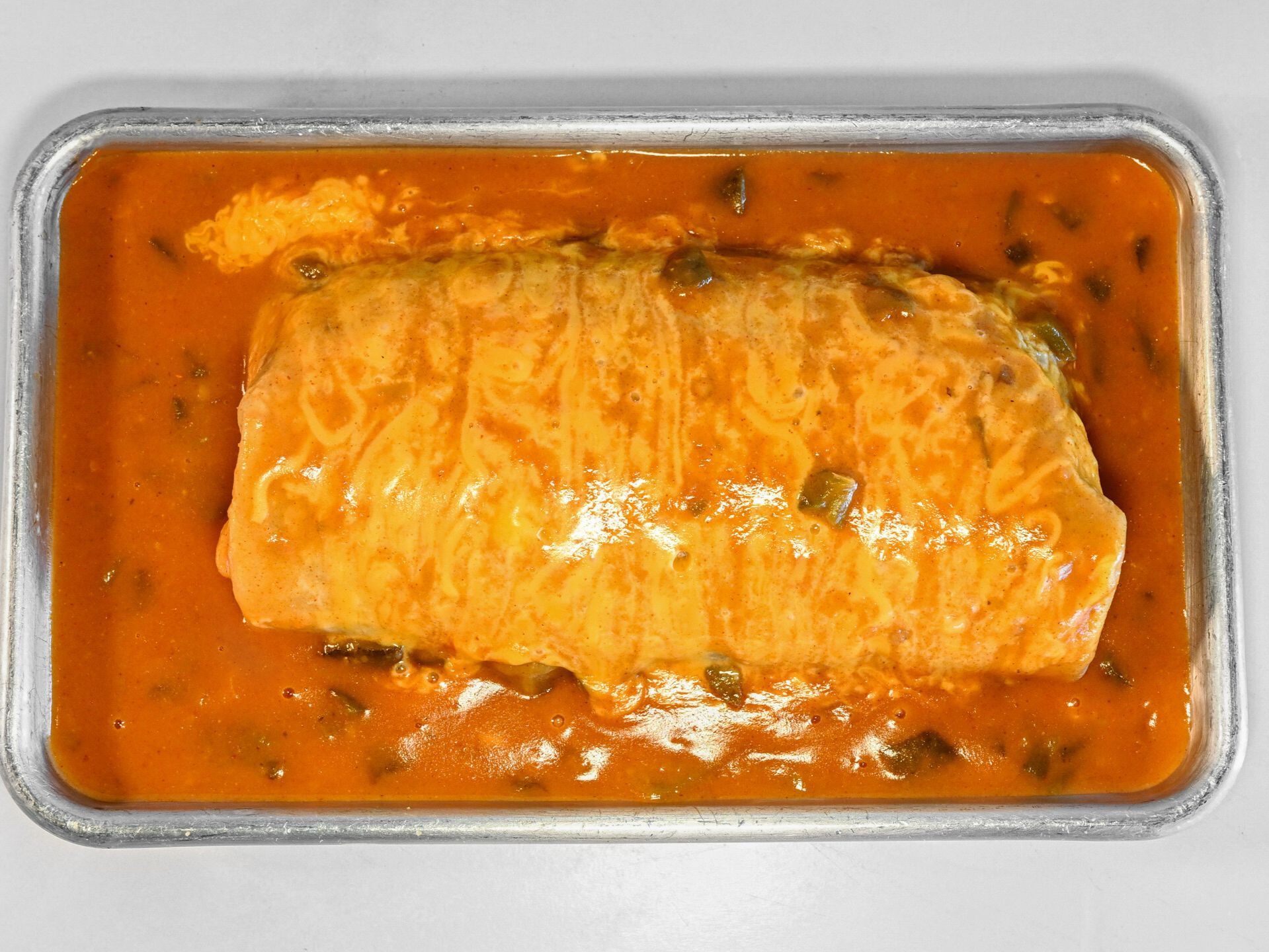 Marinated pork, cilantro, onion, salsa, and cheese smothered in green chili