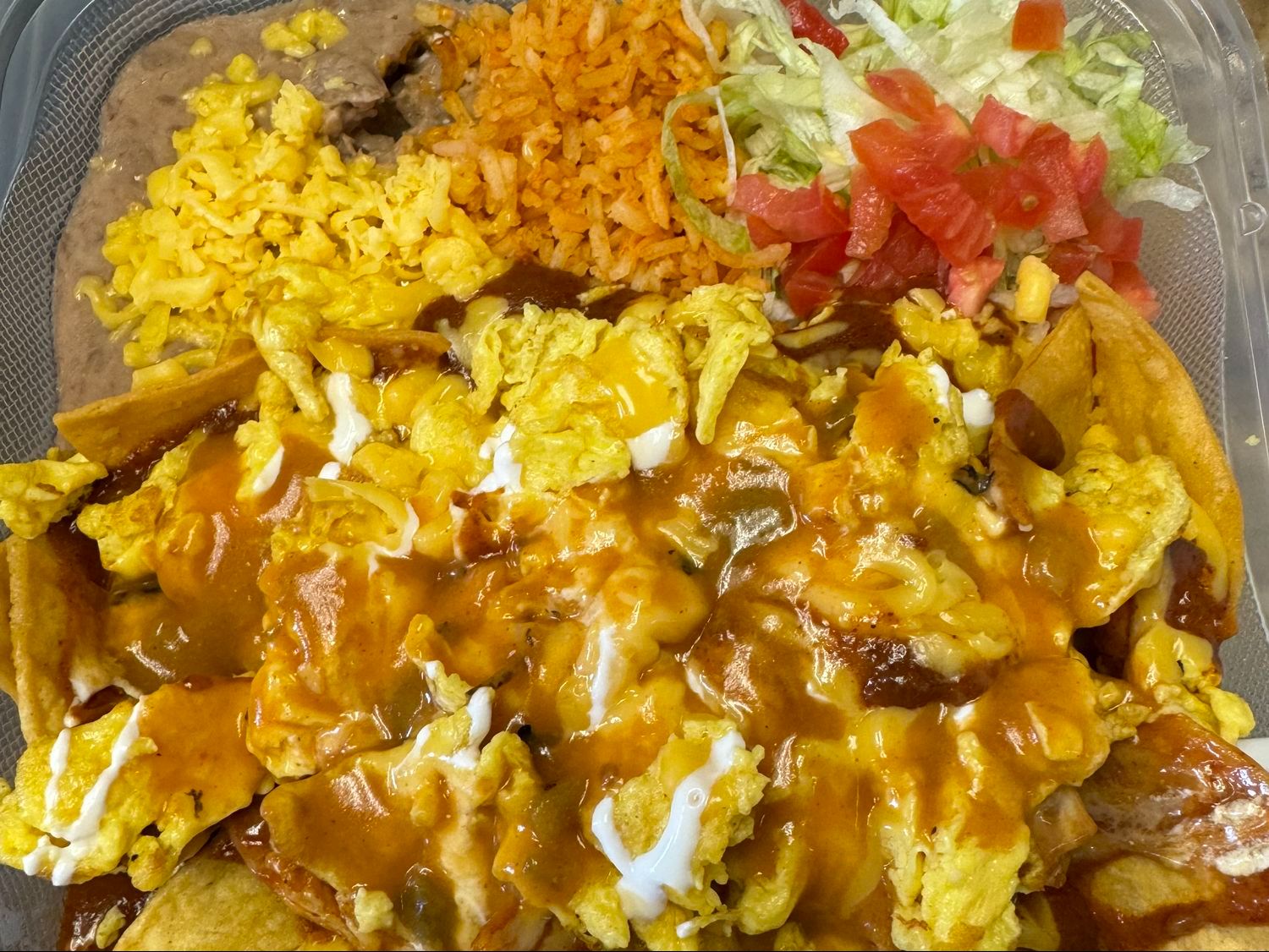 Scrambled egg, chili, cheese, your choice of protein