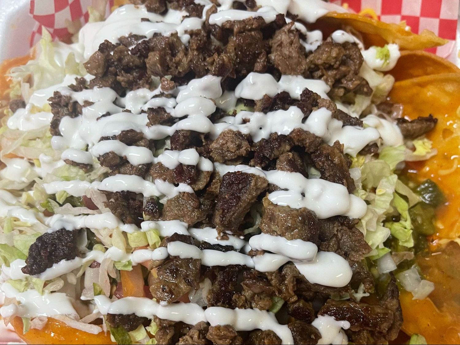 Carne asada, chili, cheese, sour cream