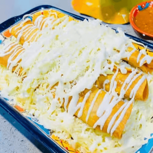 3 rolled fried taquitos with choice of chicken or potatoes.
