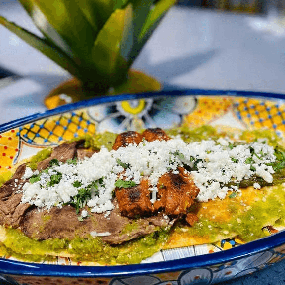 Sandal shaped thick tortilla with your choice of meat, asada, chicken, pastor or carnitas.