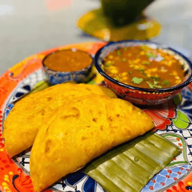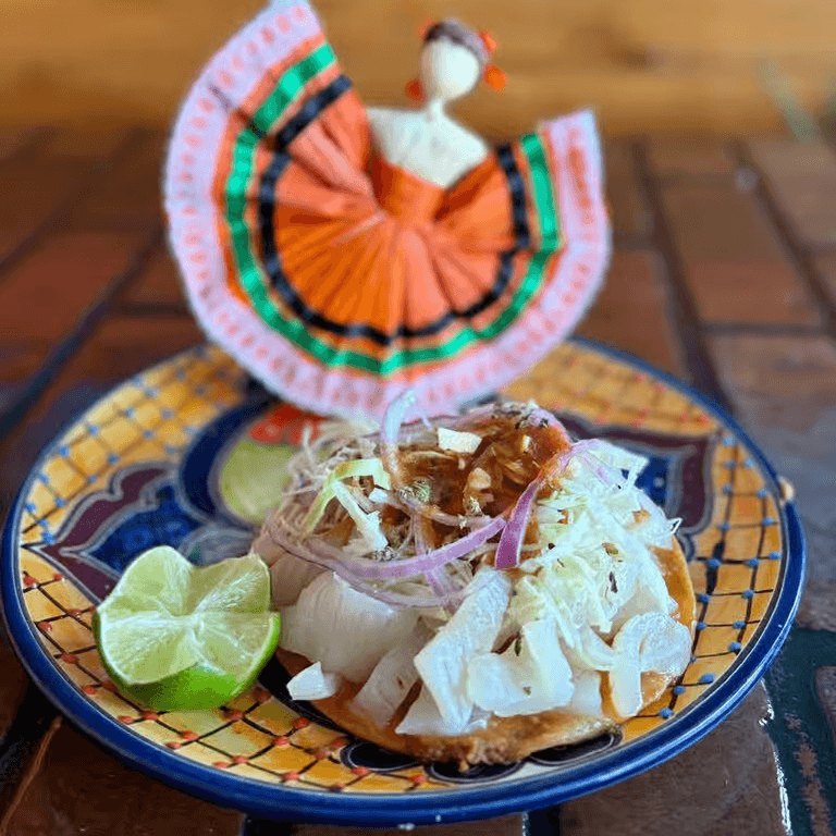 6 inch corn tortilla, with tender carnitas, buche and cueritos with a touch of guacamole and served with toreado chili and fried onion.
