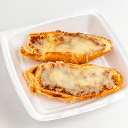 Artisanal Mexican bread with spread of choribeans and topped with melted cheese and pico de gallo on the side.