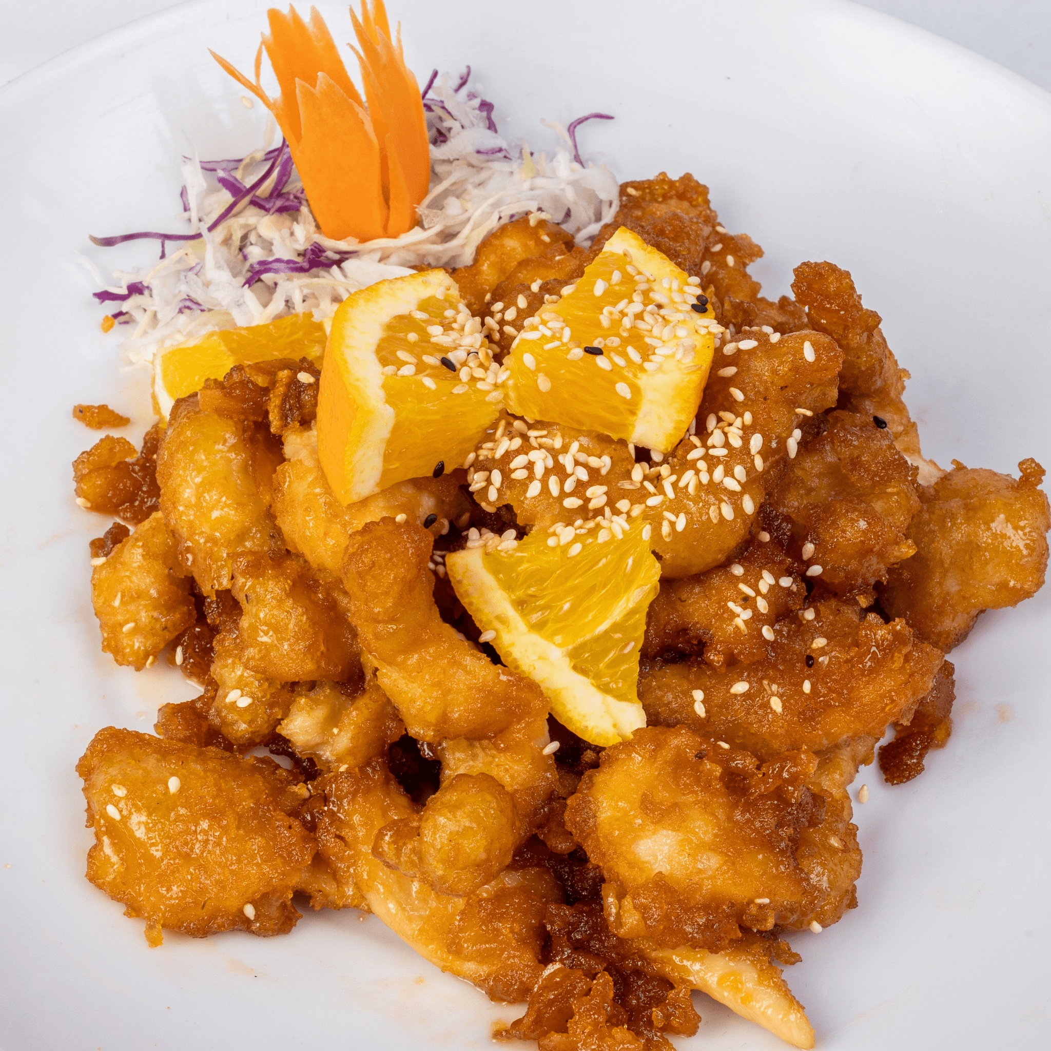 Crispy golden chicken pieces tossed in a bright, tangy-sweet orange sauce with a hint of ginger and garlic.