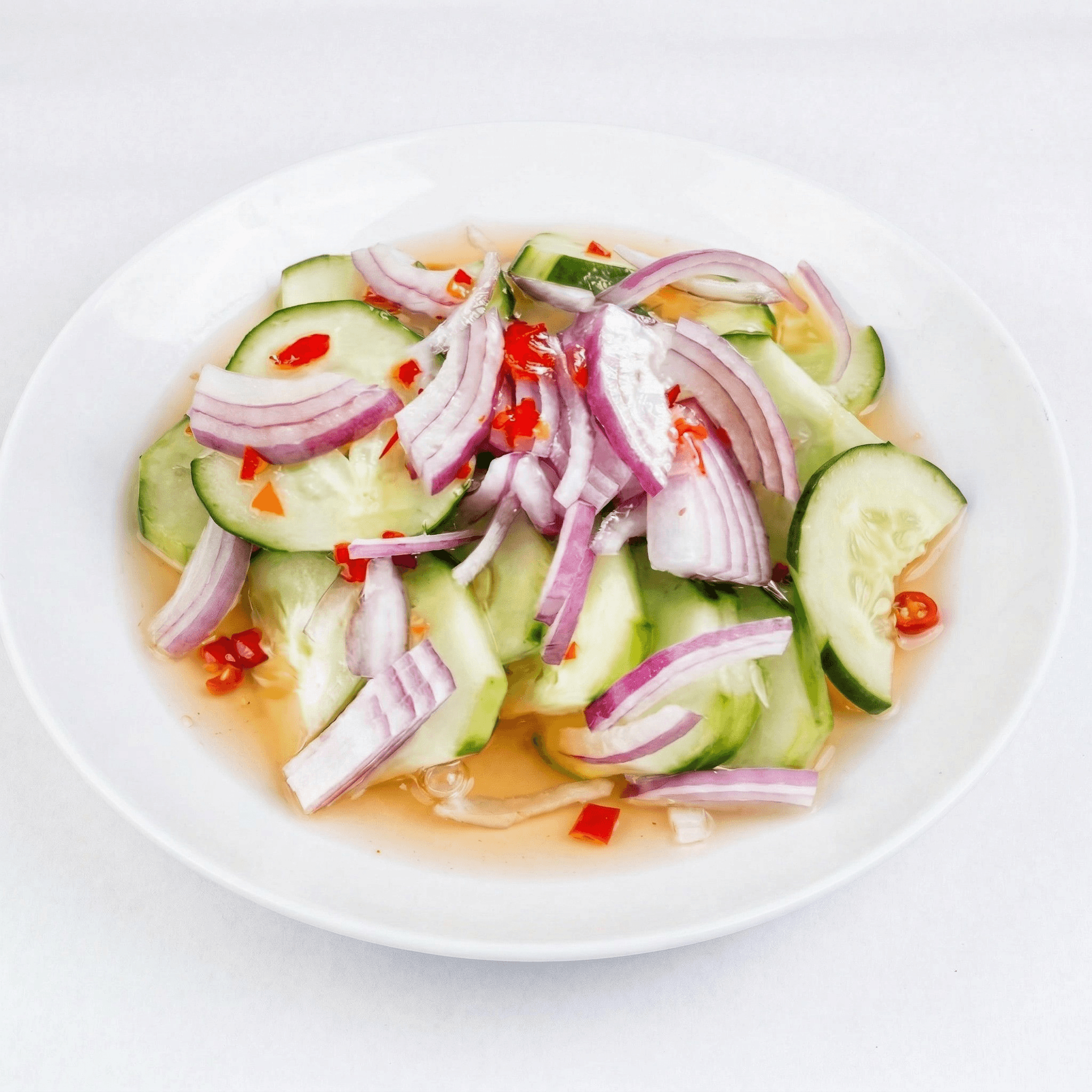 Fresh seasonal greens with cucumber, cherry tomatoes, shredded carrots, hard-boiled egg, and fried tofu. served with a peanut sauce dressing.