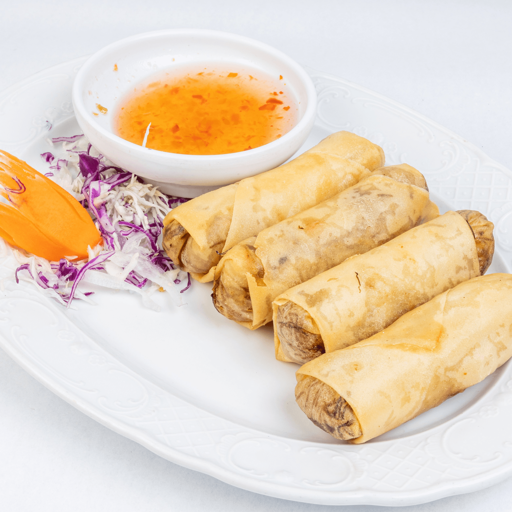 A crispy blend of cabbage, carrots, and glass noodles tucked into a light pastry shell.