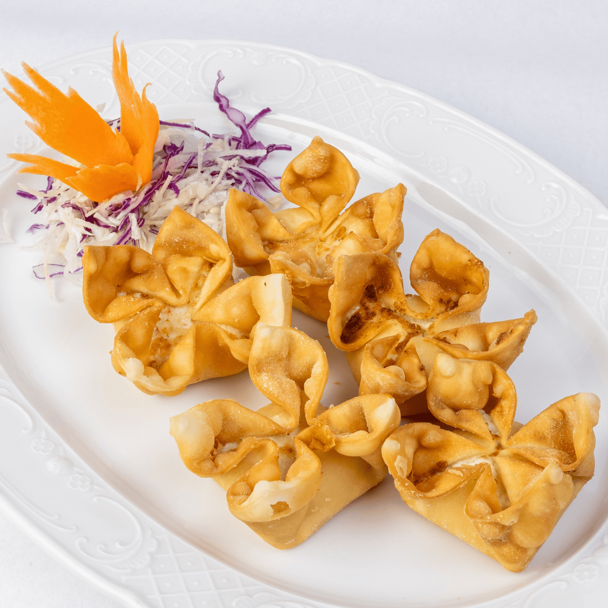 Hand-folded wontons stuffed with a savory crab and cream cheese filling.