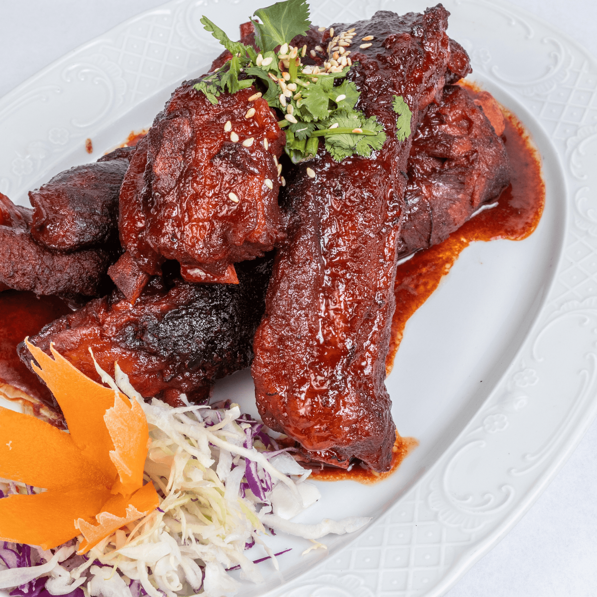 Tender, slow-cooked pork ribs glazed with our signature sweet and savory BBQ pork sauce. served with a side of steamed veggies.