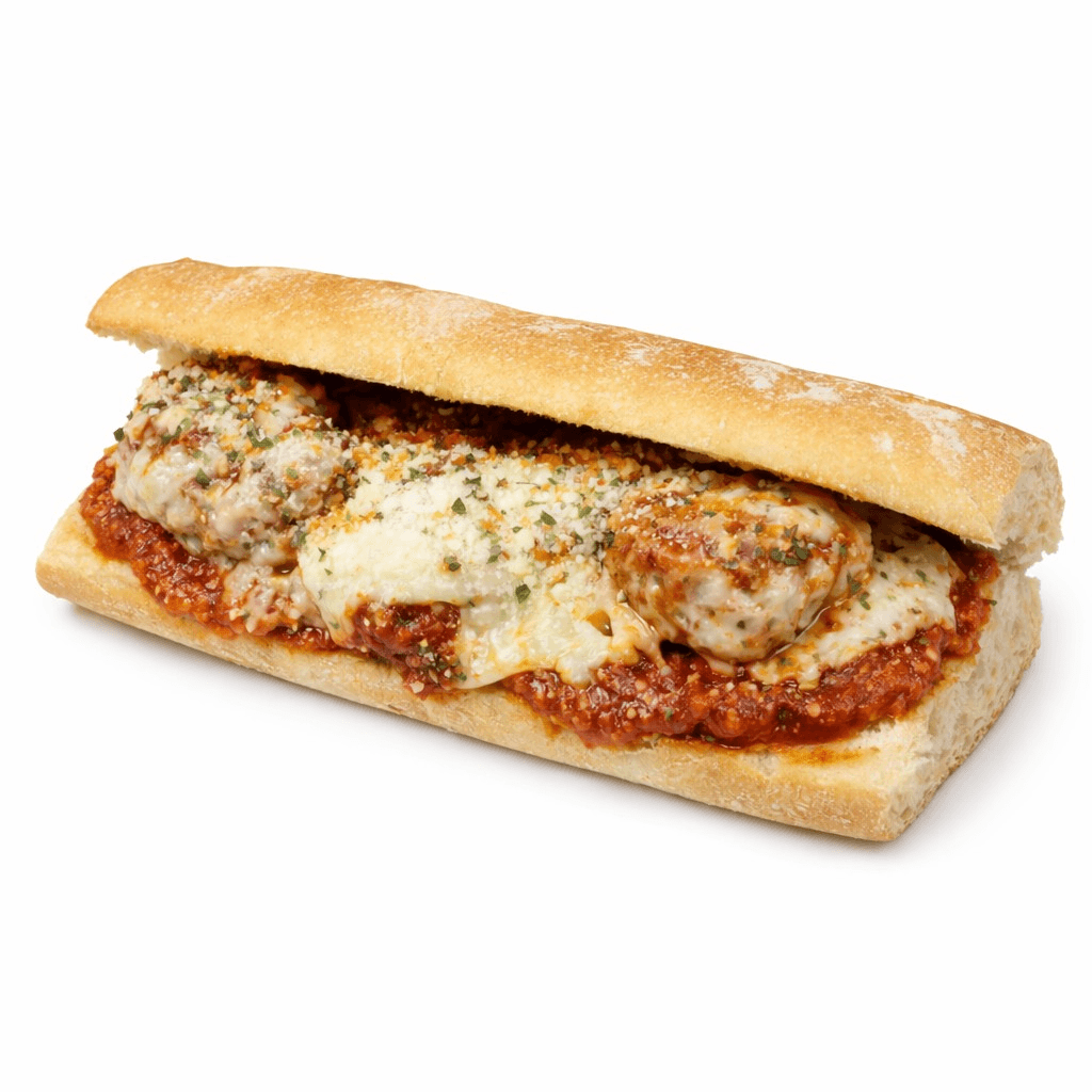 8" Tender, house-made meatballs smothered in rich marinara sauce and topped with perfectly melted mozzarella, served on a fresh, homemade roll. Hearty, saucy, and deeply satisfying, this classic favorite is pure Italian comfort in every bite.