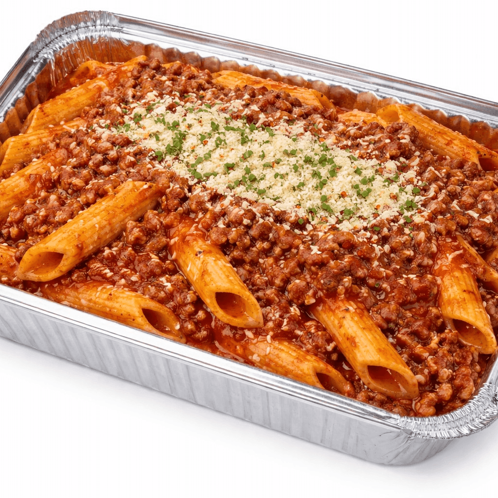 Tender penne pasta tossed in a hearty, slow-simmered meat sauce made with seasoned ground meat, ripe tomatoes, and savory herbs. Rich, comforting, and deeply satisfying, this classic dish is a perfect balance of bold flavor and homestyle warmth.