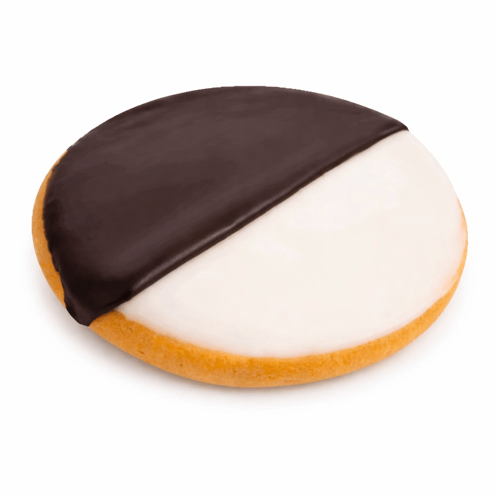 A soft, cake-like vanilla cookie topped with our signature chocolate and vanilla fondant icing. A true New York classic.