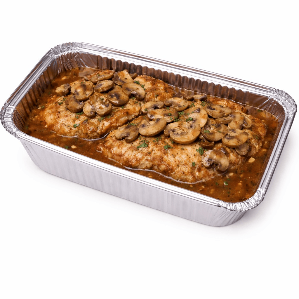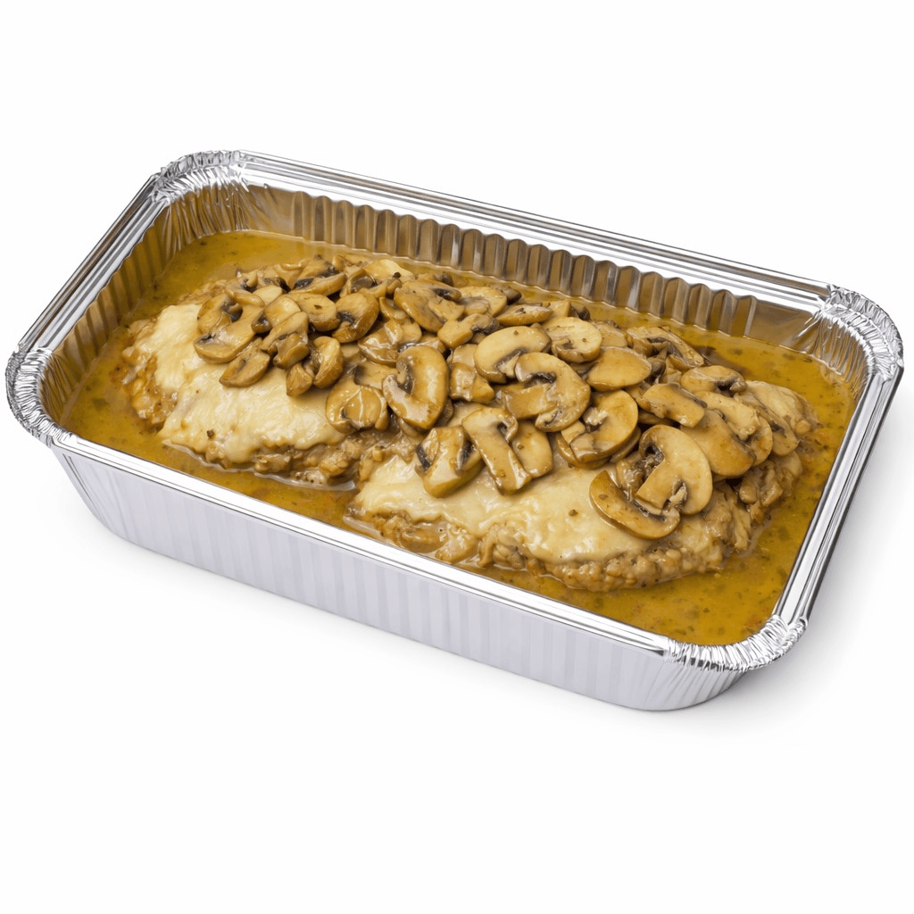 Tender chicken breast sautéed until golden, then simmered with mushrooms in a rich, velvety Marsala wine sauce. Deeply savory with a subtle sweetness, this classic Italian favorite delivers warm, earthy flavors and a smooth, elegant finish. Perfectly complemented with a side of pasta.