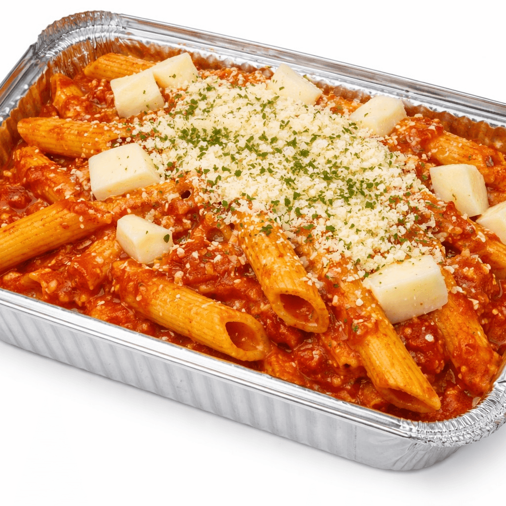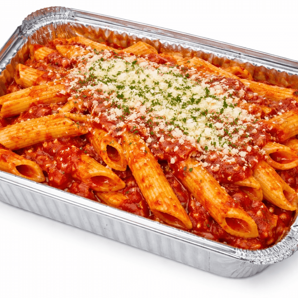 Freshly cooked penne pasta tossed in a rich, slow-simmered marinara sauce made from ripe tomatoes, garlic, and herbs. Simple, comforting, and full of classic Italian flavor, this timeless dish delivers a perfectly balanced, satisfying bite.