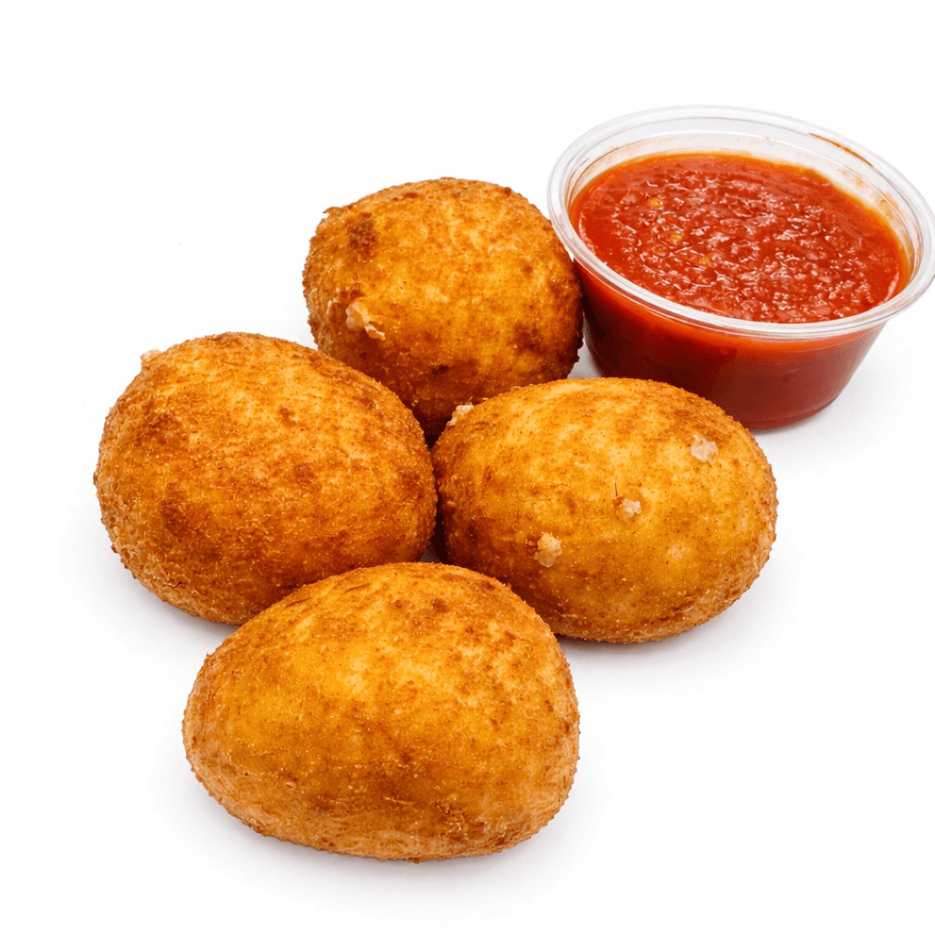 Golden, crispy Italian-style rice balls, lightly fried and filled with savory goodness. Served hot with a side of marinara sauce for dipping. Crunchy on the outside, warm and comforting on the inside — a classic favorite appetizer.