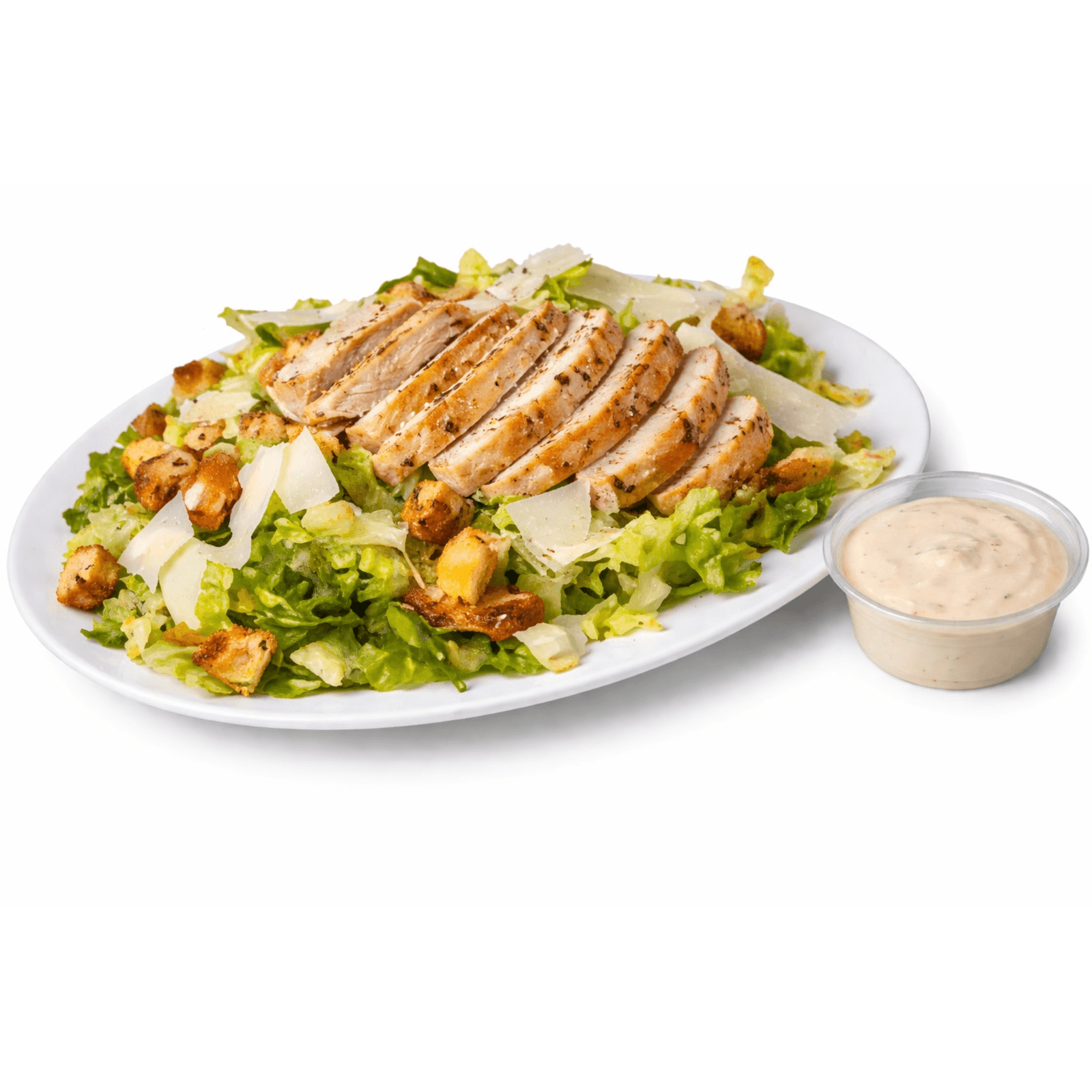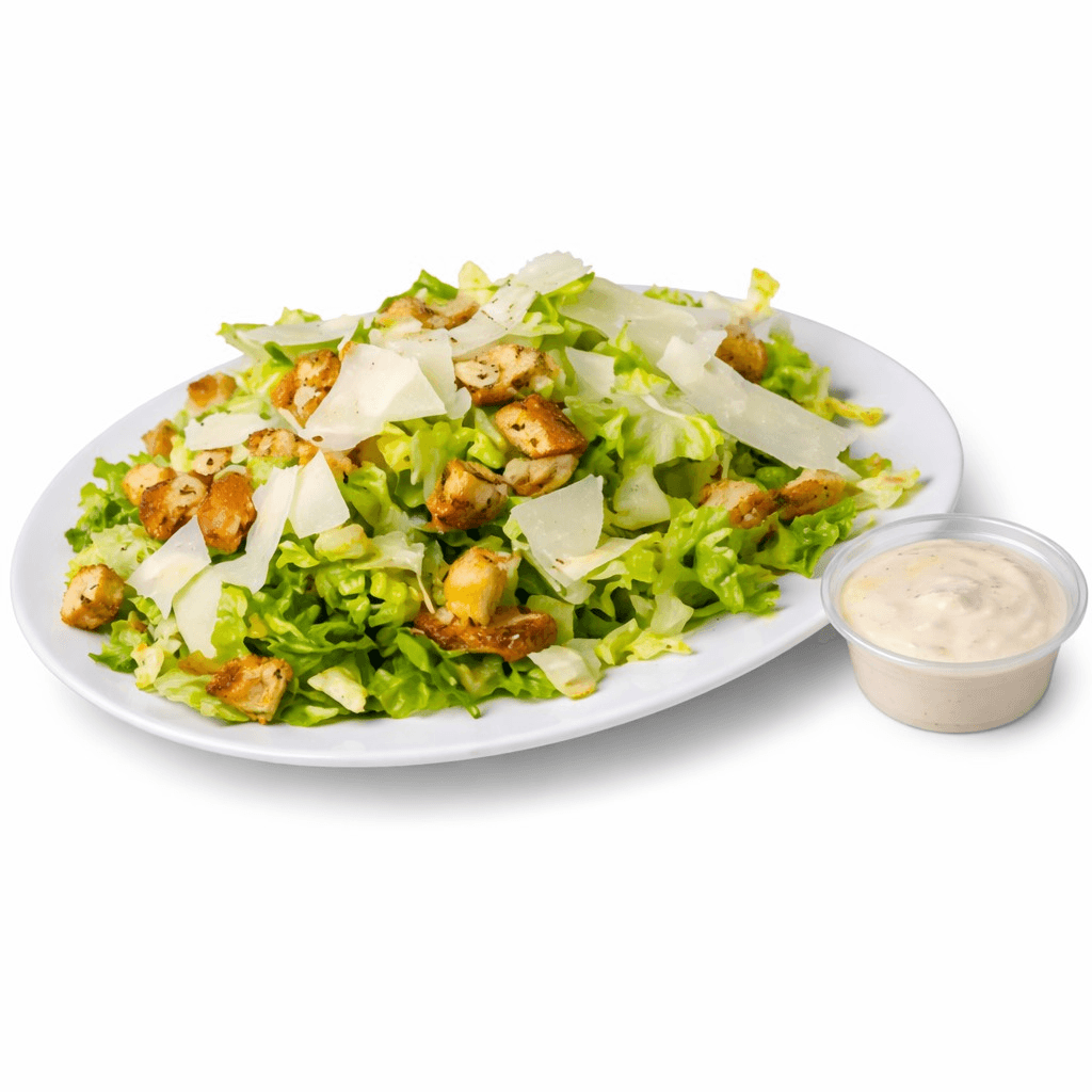 Traditional Caesar Salad with Romaine, Parmesan Shavings, and Croutons, and Caesar Dressing Feel free to add extra Grilled Chicken