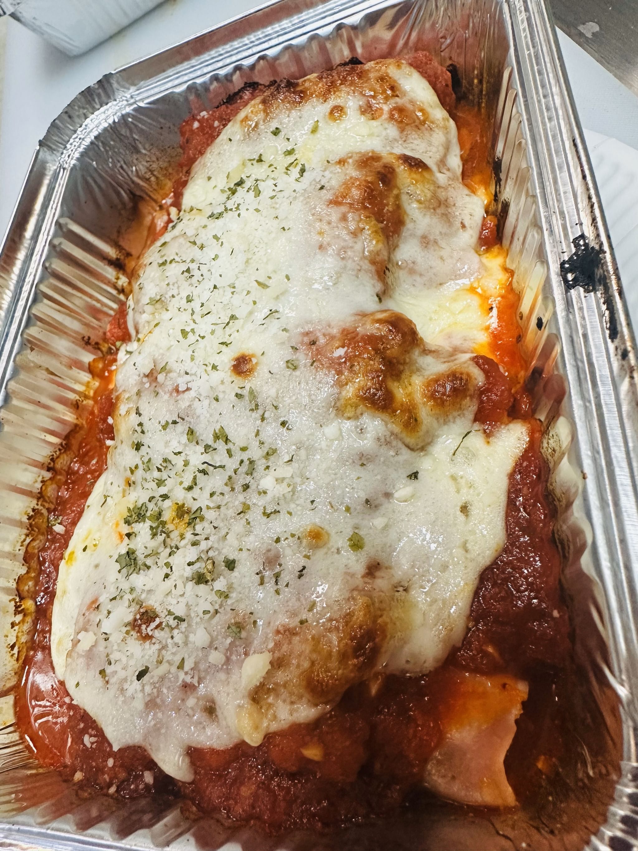 Lightly breaded chicken breast, fried to a golden crisp, topped with rich marinara sauce and melted mozzarella, then finished to perfection. Comforting, hearty, and full of classic Italian flavor, this dish offers the perfect balance of crispy, saucy, and cheesy goodness. Served with pasta for a satisfying, timeless favorite.