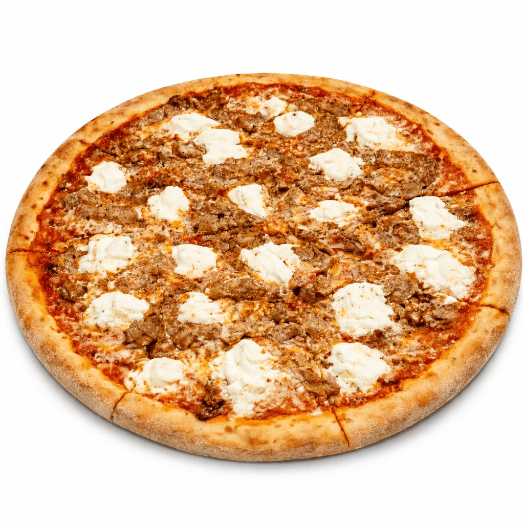 A New York Favorite- Thin crust with Sausage, Meatballs, and Fresh Ricotta Cheese baked perfectly. Available daily. New York pizza is a large, thin‑crust classic—crispy on the outside, soft in the middle, with rich tomato sauce and melty mozzarella, perfect for folding and savoring