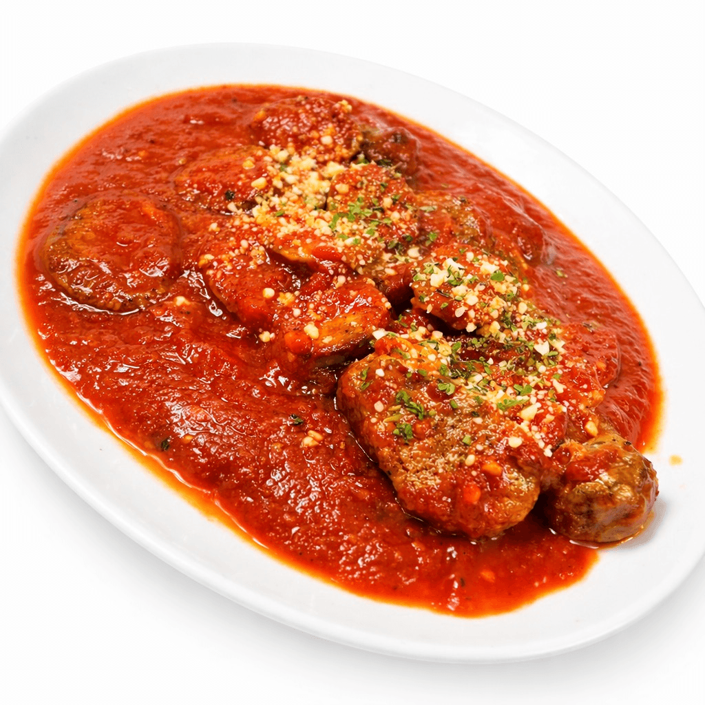 Lightly breaded eggplant, fried to a golden crisp, topped with rich marinara sauce and melted mozzarella, then finished to perfection. Comforting, hearty, and full of classic Italian flavor, this dish offers the perfect balance of crispy, saucy, and cheesy goodness. Served with pasta for a satisfying, timeless favorite.