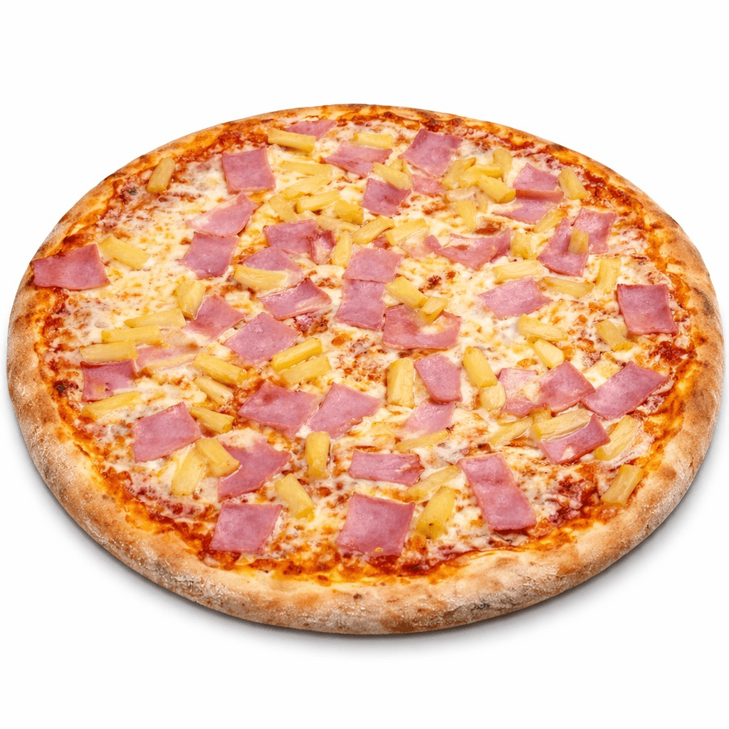 Available daily. A deliciously balanced combination of savory ham and sweet pineapple, topped with melted mozzarella on a perfectly baked crust. Sweet, salty, and irresistibly satisfying, this classic favorite delivers a bright, tropical twist on traditional pizza.