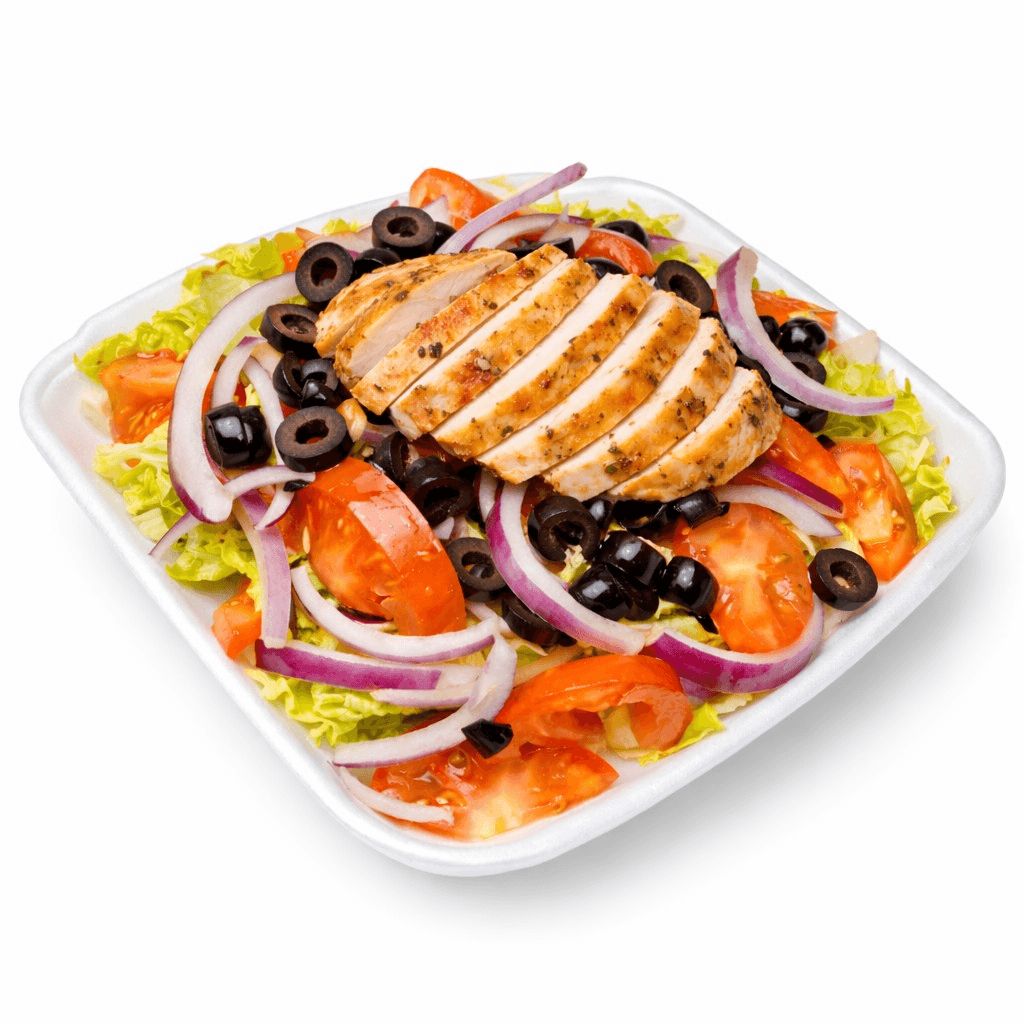 Lettuce, tomatoes, olives, and red onions over a bed of romaine lettuce and served with Italian dressing Feel free to add an extra grilled chicken breast.