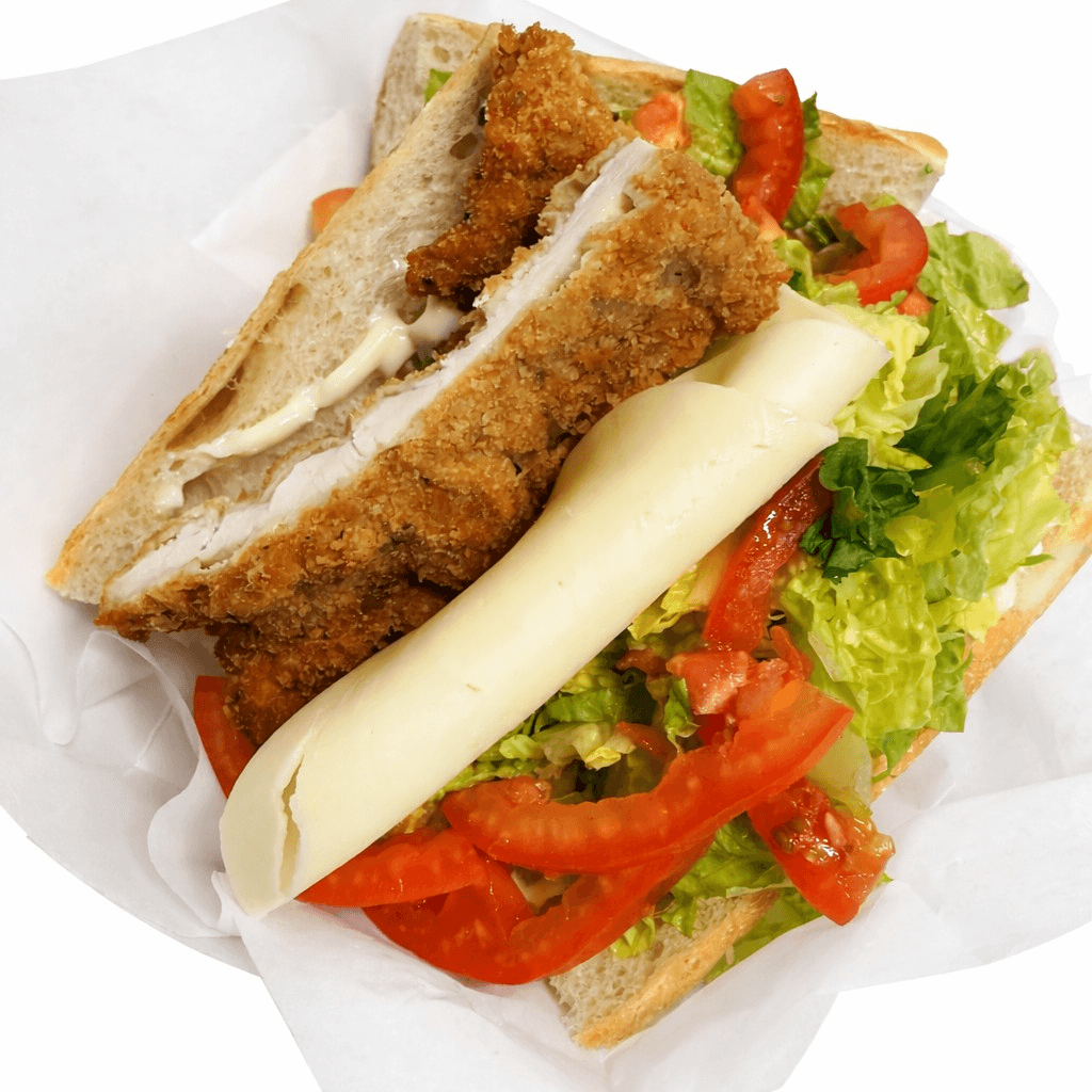8". Breaded chicken cutlet, provolone, lettuce, tomatoes & mayo