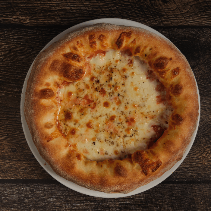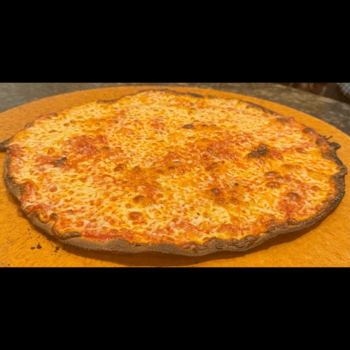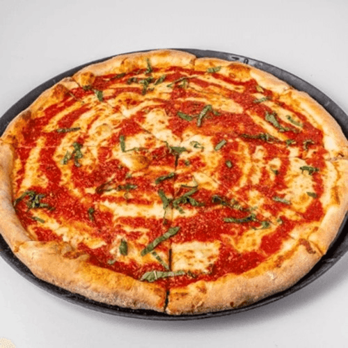 Roman style ultra thin 12" cheese pizza. Because of the Margherita pizza’s extremely thin crust we recommend no more additional toppings.